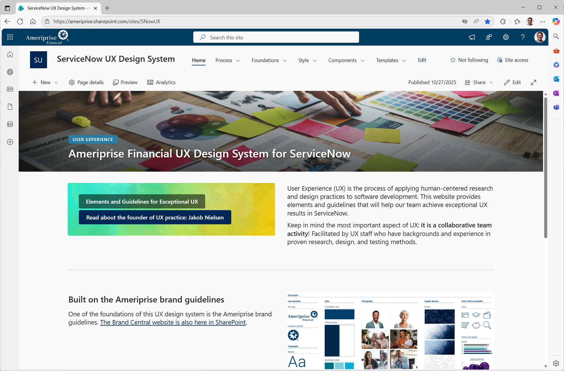 In September 2025, Ameriprise Financial hired me (contract) as a Senior UX Analyst to lead the creation of a new UX practice for an internal ServiceNow development team.